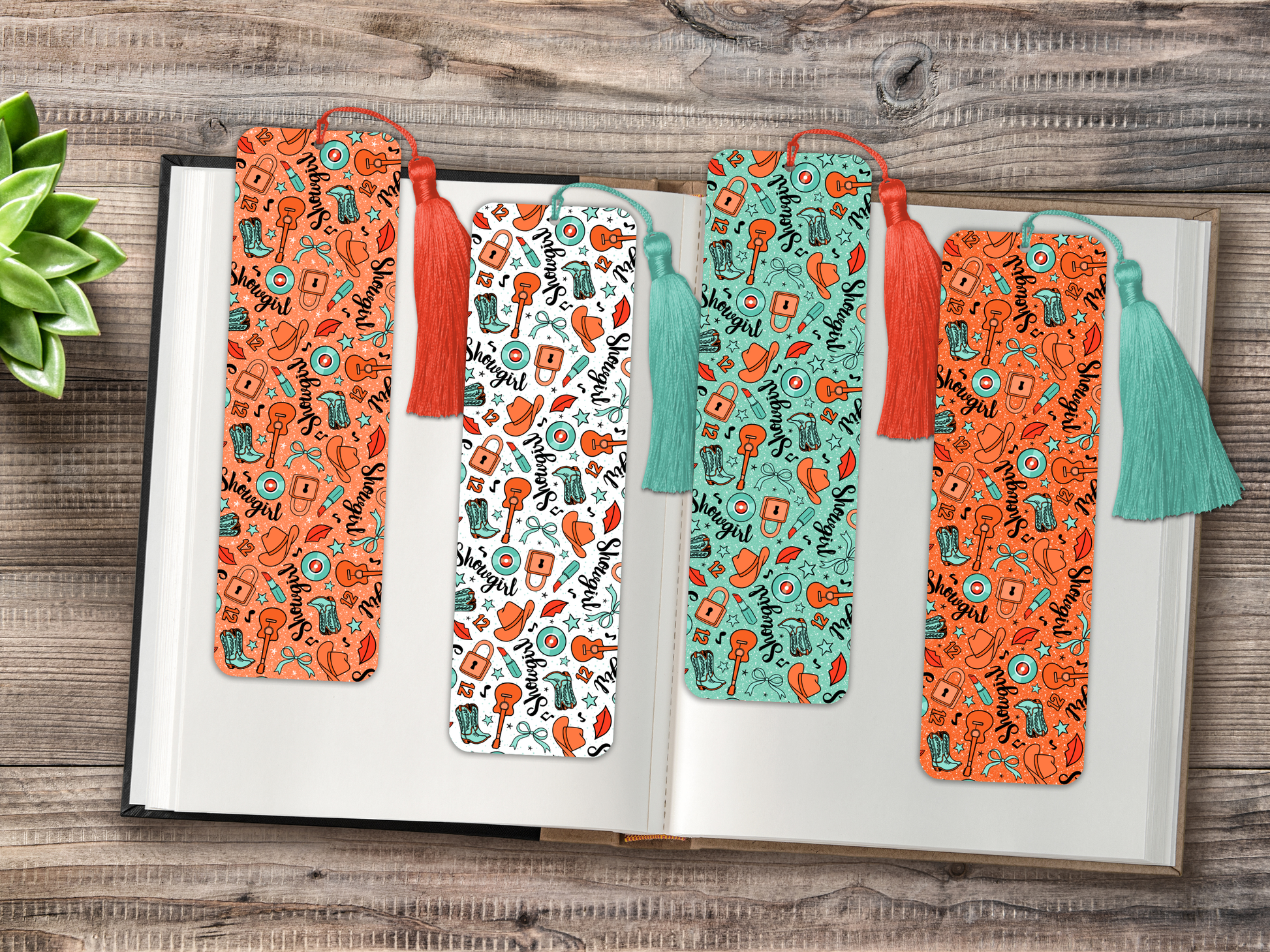 Our bookmarks are made from a thin, light weight, smooth metal.  They are sublimated with ink for a beautiful long lasting product.  No peeling of the design.